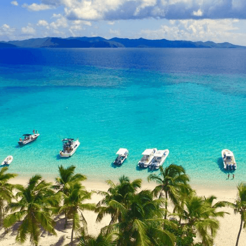 Terug naar Tortola: we zeilen langs de noordkust met haar prachtige stranden. De hele dag alle tijd om te ankeren en chillen op het dek met uitzicht op de witte palmstranden.