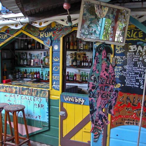 Daar gaan we in Salt Wishtle Bay voor anker. Let op, bij de zuidkant van de baai bevindt zich een koraalrif waar menig jacht op vast is gelopen. In het dorpje zijn enkele restaurants waar je heerlijk versgevangen kreeft kunt eten.
