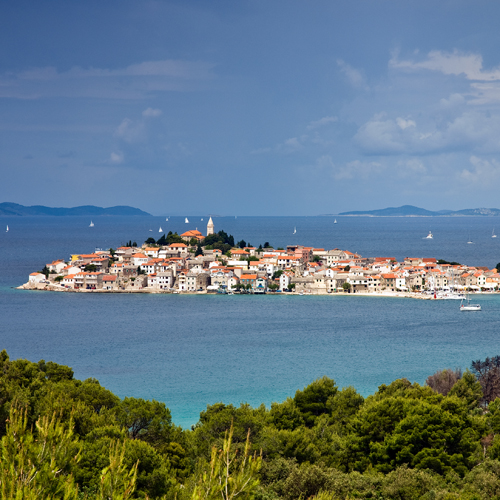 Langzaam worden we wakker en genieten we van een zonnig uitzicht. De vroege vogels nemen een ochtendduik of maken een wandeling over het eiland op zoek naar mooie uitzichten. Zlarin wordt -door haar ongerepte uitstraling- het gouden eiland genoemd. Het eiland heeft een aantal goede snorkelspots. Dat kunnen we combineren met het ontbijt door meteen uit te varen en voor anker te gaan in één van de baaien om de hoek. Terwijl de zon aan de blauwe hemel staat, voert een warm briesje ons naar Primosten; een prachtig pittoreske plaatsje op een schiereiland. De omgeving is bekend om zijn wijngaarden en van één van de tien mooiste stranden van Kroatië: Mala Radua. In een diepe baai liggen kleurige vissersbootjes aan de wal waar de krekels te keer gaan in de bomen. Er loopt een boulevard met kraampjes vol groente en fruit of souvenirs naar de poort van het kleine centrum. Daar vind je kronkelende steegjes die vanaf een centraal plein vol bloembakken en barretjes leiden naar de kerk bovenop de heuvel met een geweldig uitzicht.